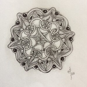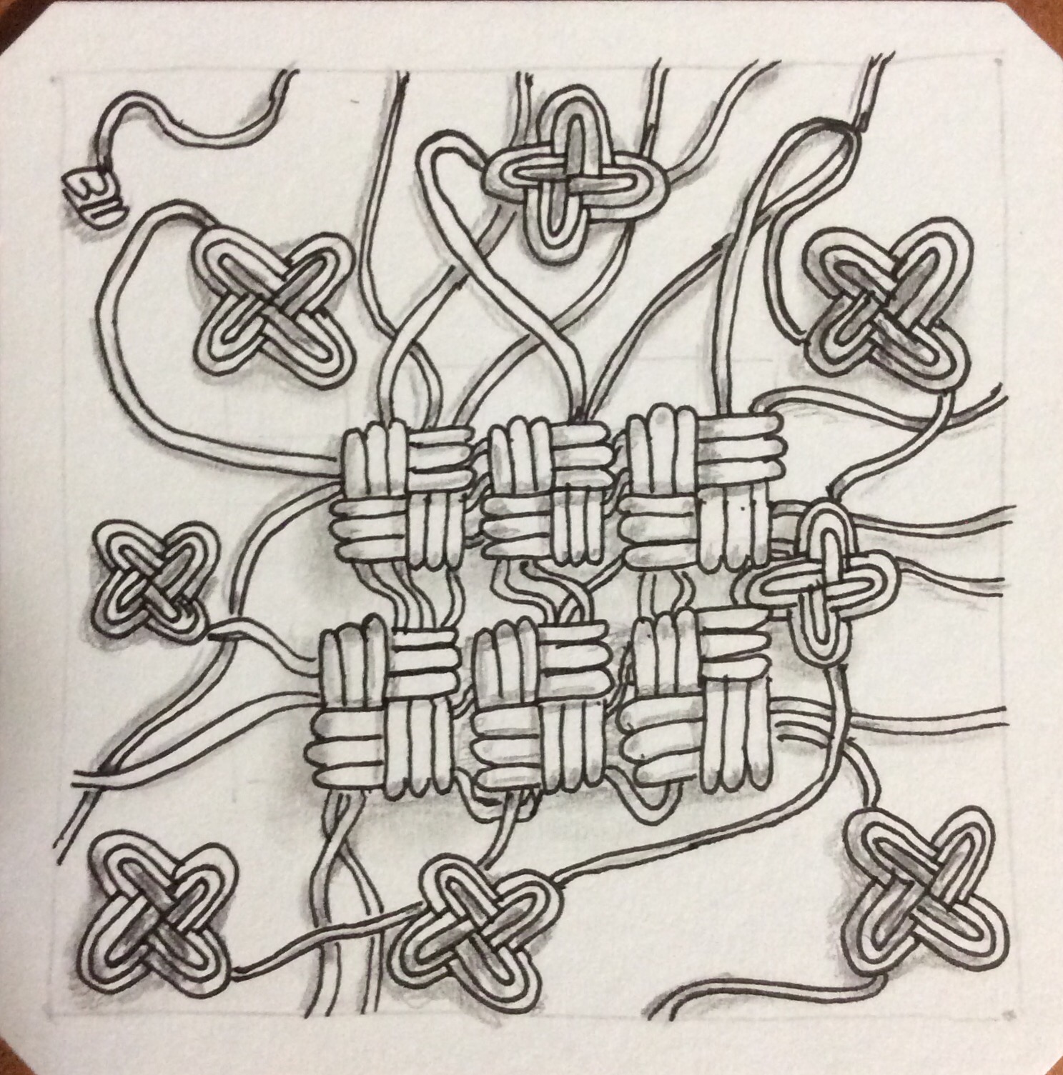 Just drawing this pattern is soothing and meditative. Adding elements to enhance the tangle is challenging, fun, and meditative in its own right.