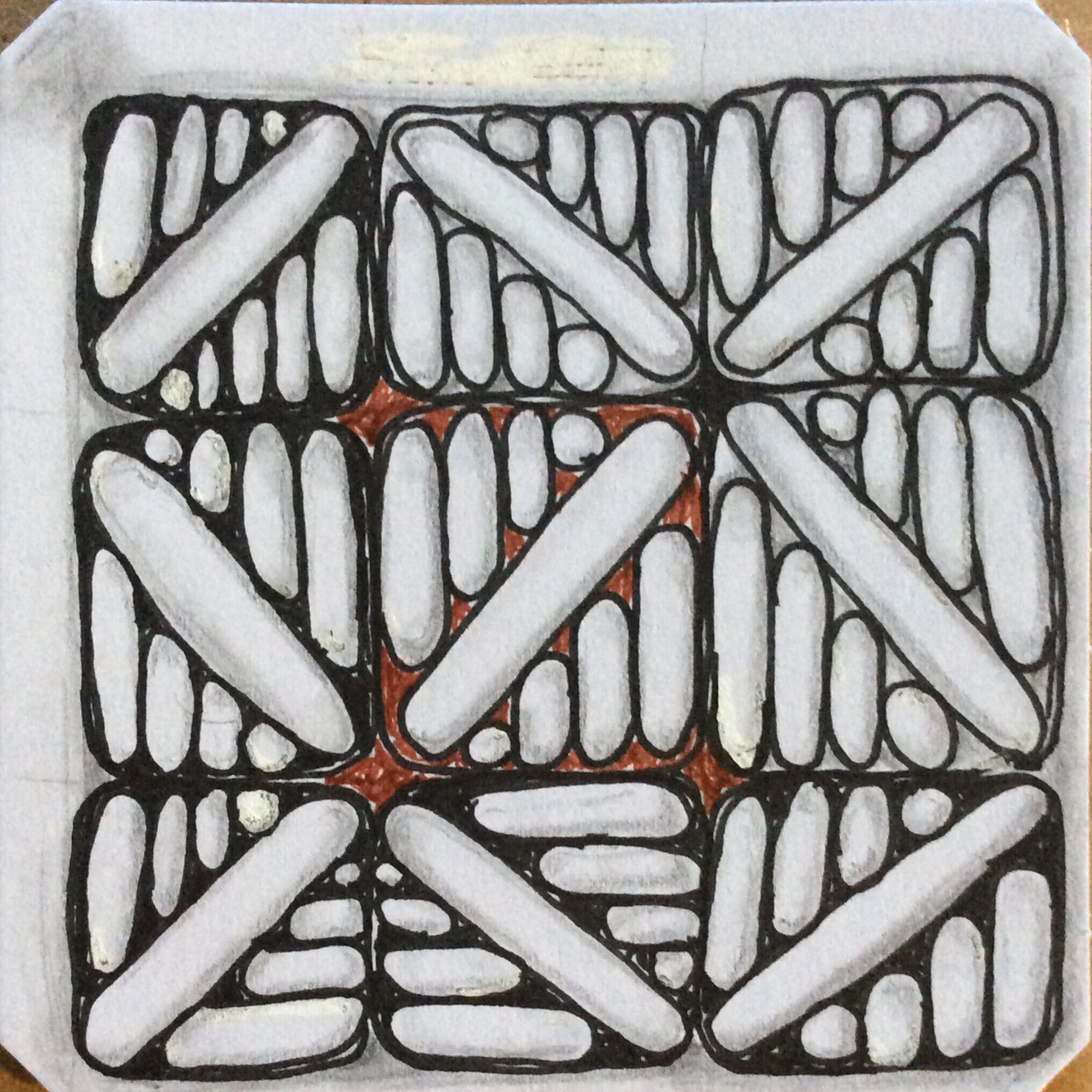 It was two days before I recorded what I saw as a potential Zentangle pattern. To my eye, it functions best as a grid or border tangle.