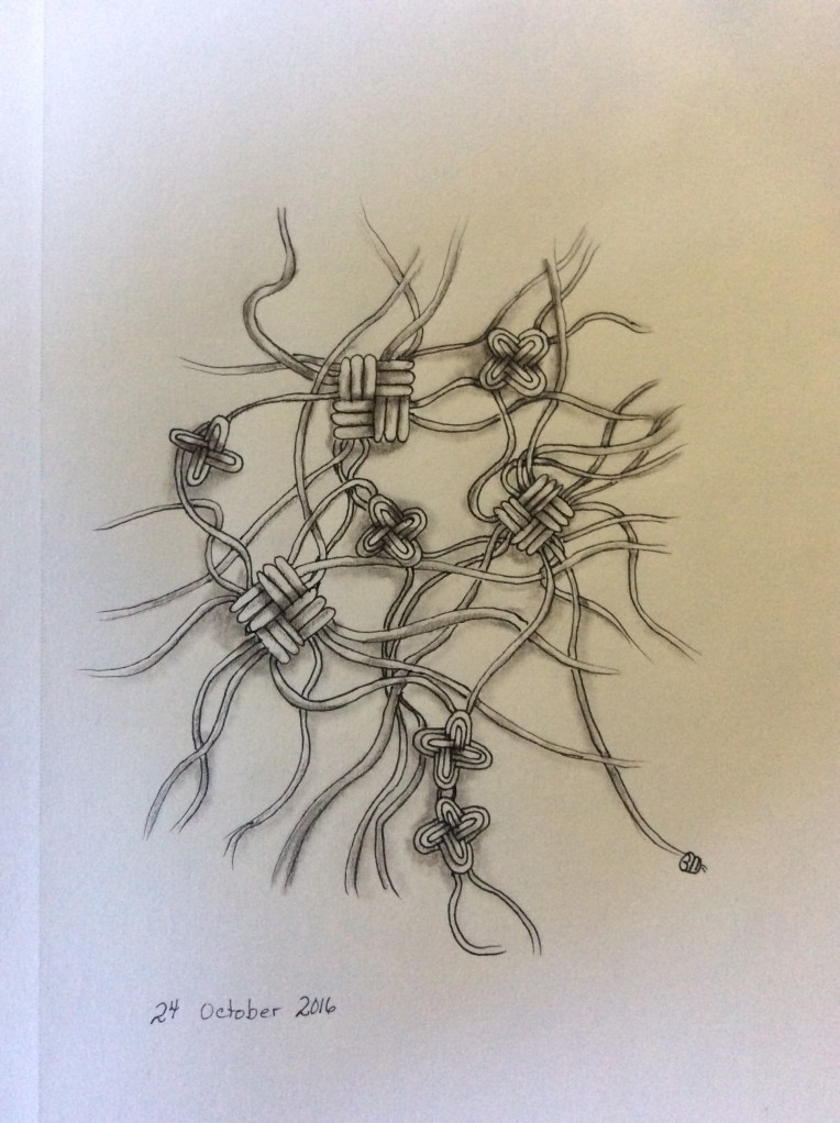 This picture shows a hurriedly drawn grid with a few minor differences in the basic pattern–shading, rounding, rotation. I think it might also work well as a background pattern, but we’ll see what I come up with.