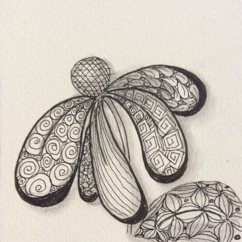 Zentangle is in large part a mindful method of stress reduction. When one tangles, a meditative calm sets in, often releasing unexpected bubbles of creativity that positively excite us into a focused frame of mind as we concentrate on what the pen is drawing. Sometimes we plan our tangling; sometimes the pen seems to take over and the only things left to our minds is to focus on steady strokes, straight lines, and smooth curves. As we are doing all this, the brain and body release endorphins, and we feel better and better.