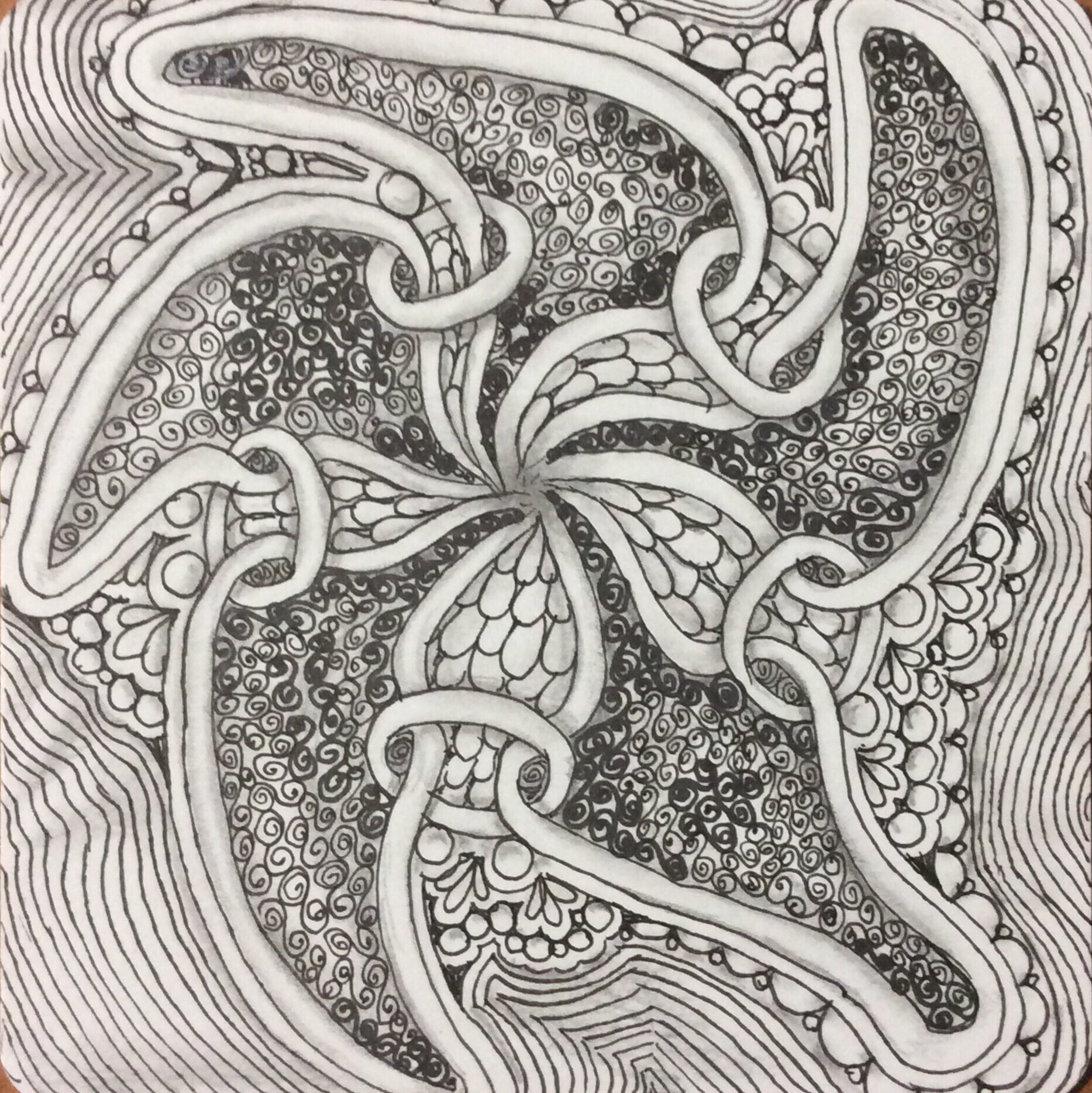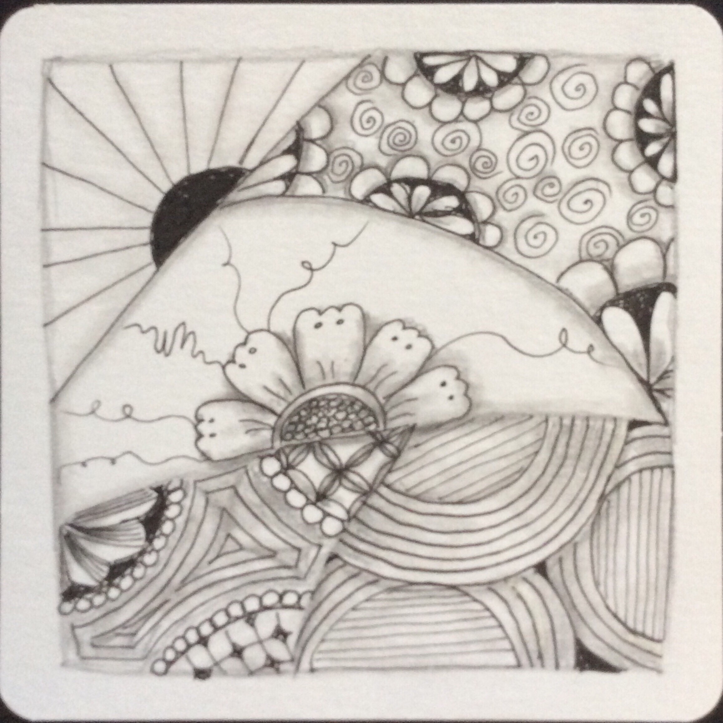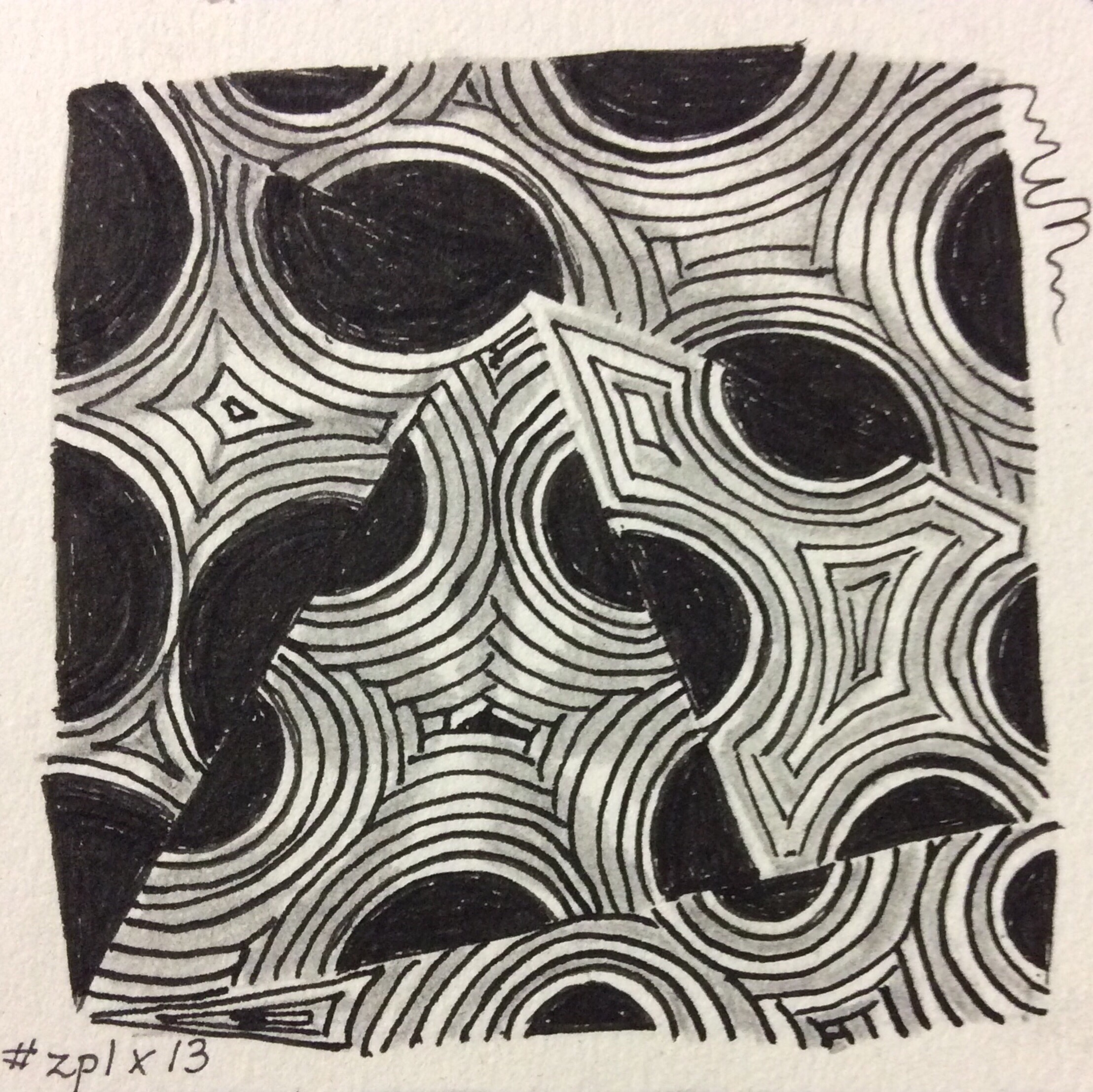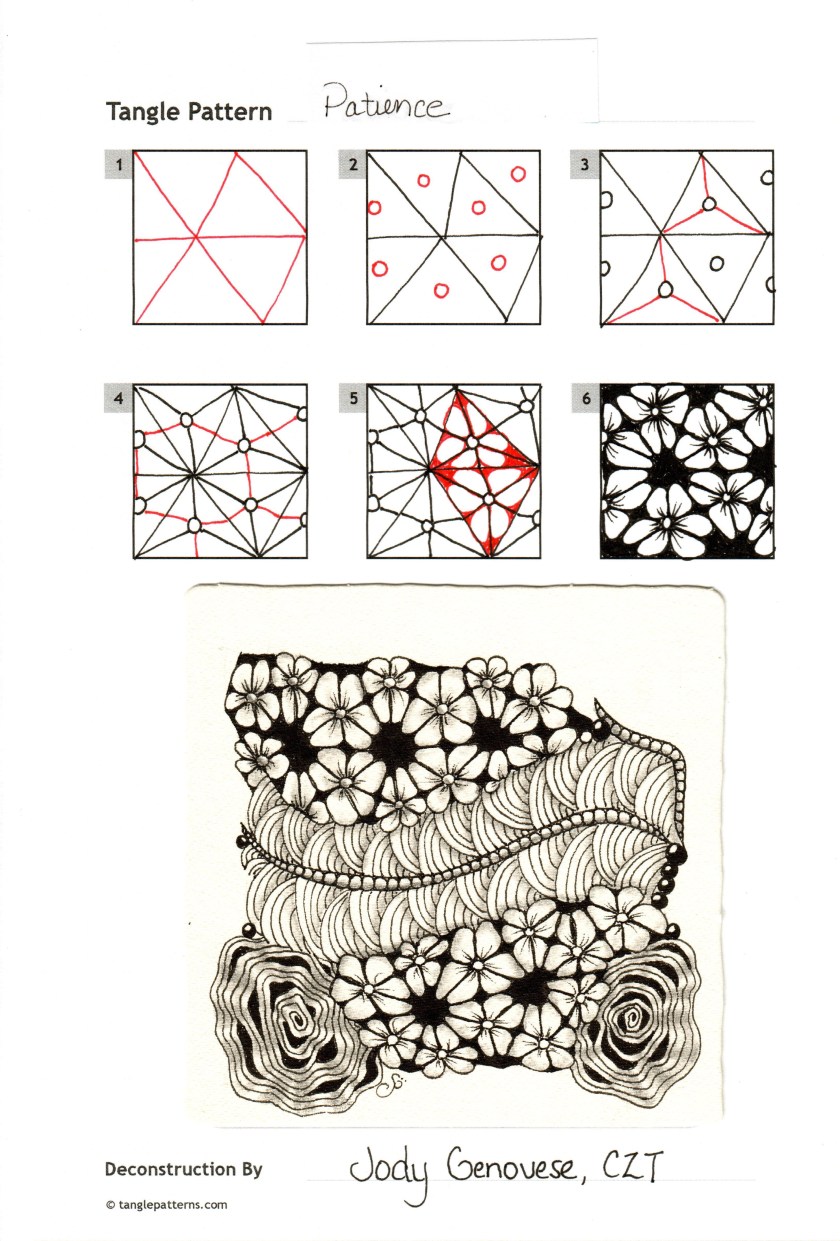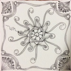 There is always the tendency to use the newest patterns as one tangles, so that “older” and classic patterns kind of fall out of memory for a while. Working through the Primer again–or just using it for inspiration or a reminder of a technique–reminds me of what has become part of my style as well as of the roots of my tangling. Mostly, it reminds me why I began to tangle and why I continue to tangle, even if I temporarily become overwhelmed with possibilities and the idea of meditation seems to fly out the window.