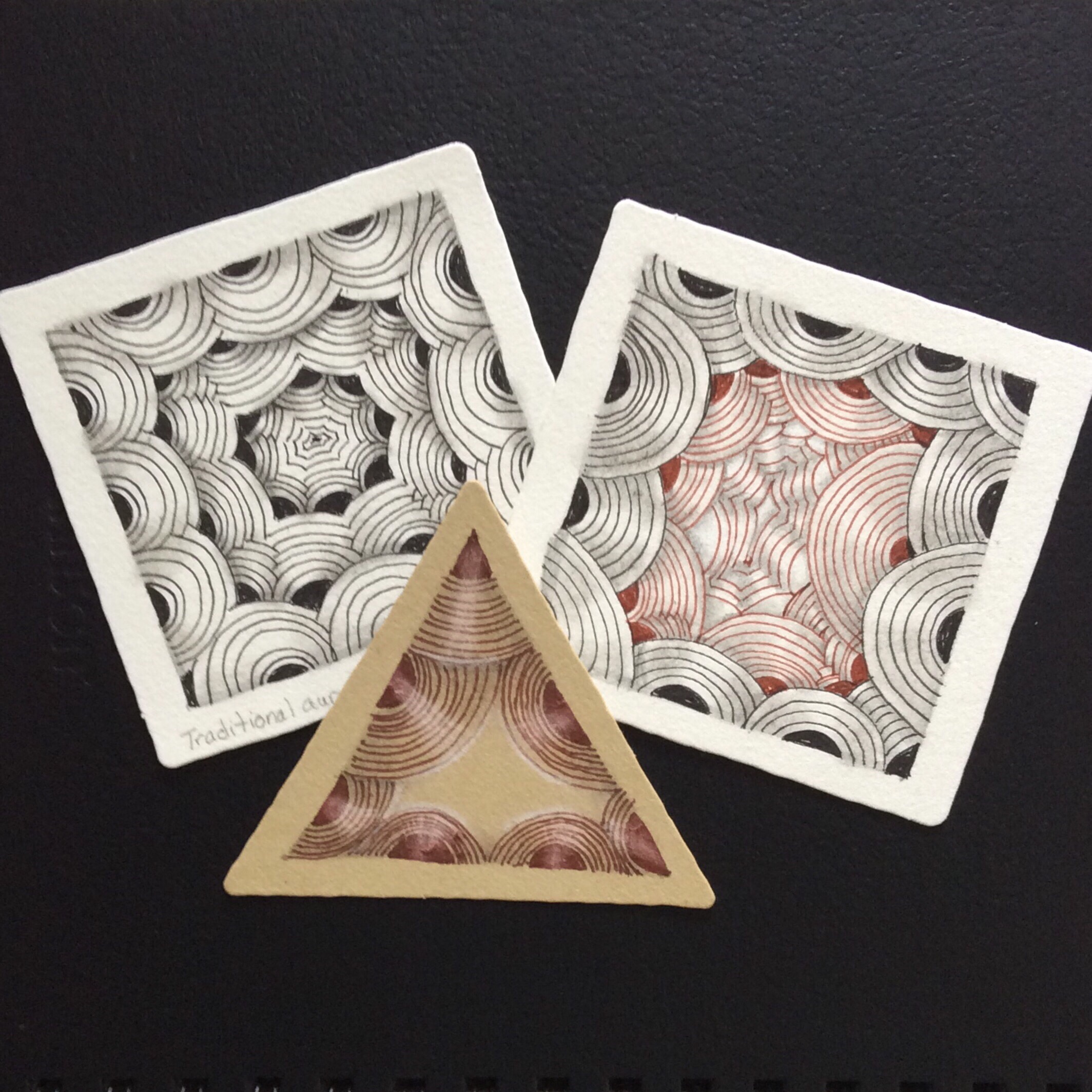The tiles and tangles below are studies based on some of the Lesson 6 featured patterns and related exercises.