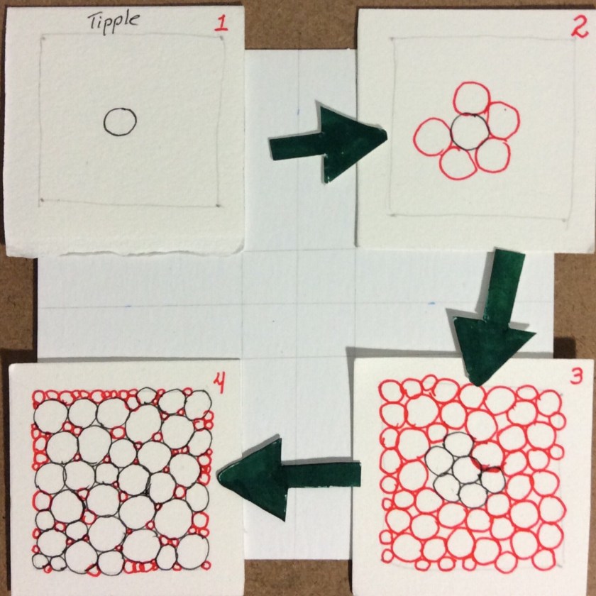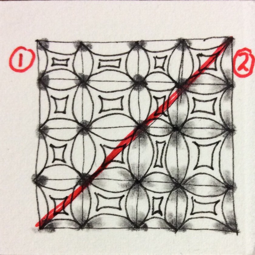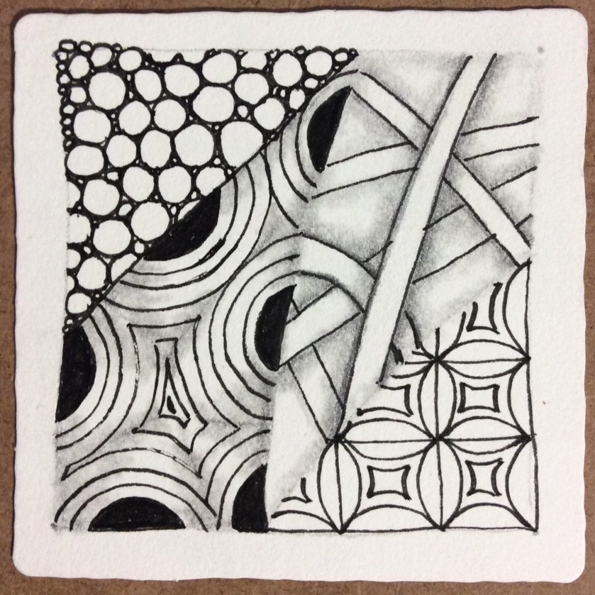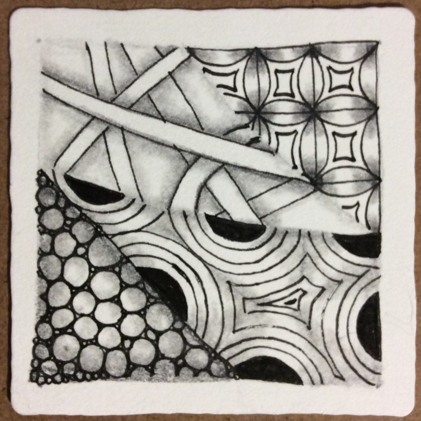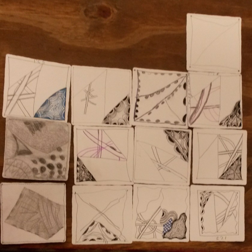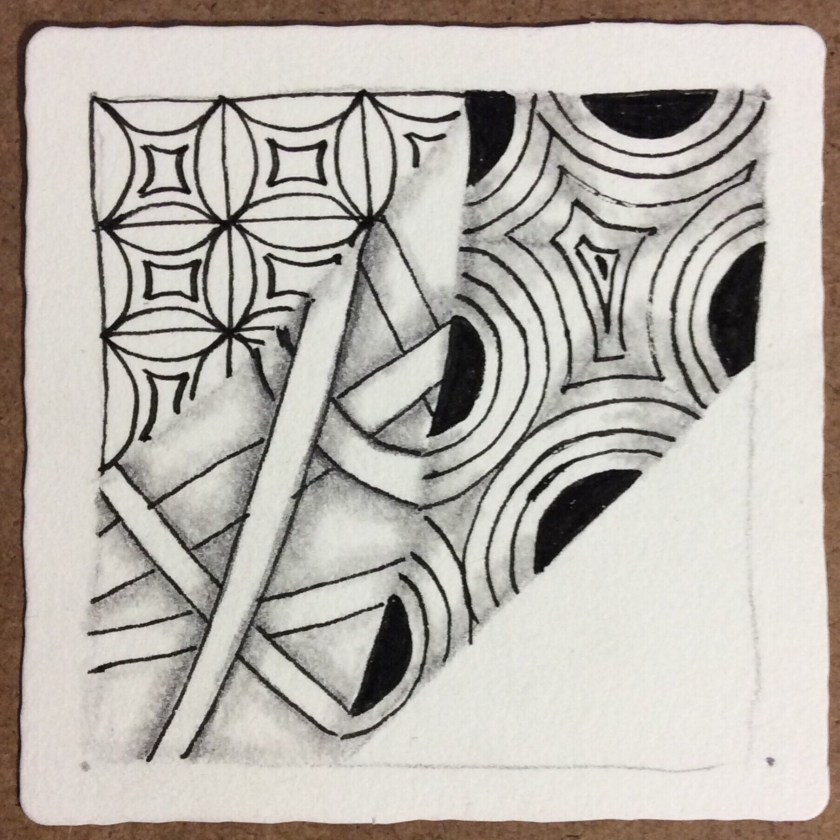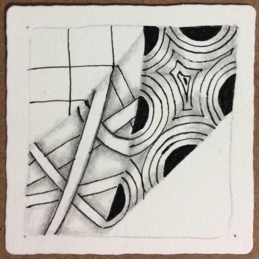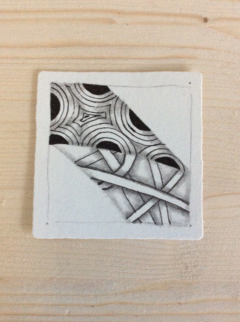 One of the best uses for the completed spinner tile is to help me select patterns to tangle on days when I just can’t get started. There are days when no tangle comes to mind.