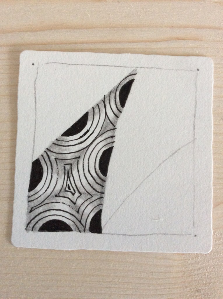 Meanwhile, I am about to start on the second spinner tile, using brighter colors and tangles of my own choice.