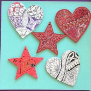 This can work whenever your items blend instead of separate. I got the inspiration for this from a book by Eni Oken’s, who has a beautiful blog and sells wonderful books on drawing techniques specific to tangling. I only have a few, but they left an impression on me that allowed me to take things a step in another direction. As you gain experience, it is amazing how your mind focuses on using techniques learned for one thing and applying them in a whole new way. My inspiration came from Eni’s book on making white seem to sparkle on black tiles.