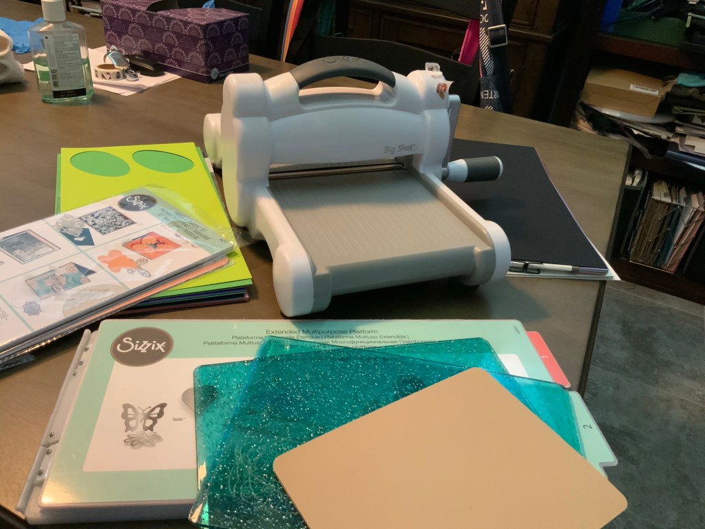 The pink and aqua eggs sheet was my first stab at embossing with a die instead of an embossing folder. (Pause) … OK. It’s my first time embossing anything; ever. And I need to differentiate here between the use of the term embossing when the intended result is to raise an image from the fibers of a piece of some type of paper or metal tape, and the embossing that involves pouring powdered embossing crystals over stamped or drawn wet ink—especially clear embossing ink—and then heating the image/sentiment with an embossing heater. The heat literally melts the crystals, leaving behind a colorful or glossy raised image wherever the embossing ink was used. My current project involves the use of only paper and dies, run through a die-cutting/embossing machine. (The heat embossing version is something I am saving for tomorrow.)