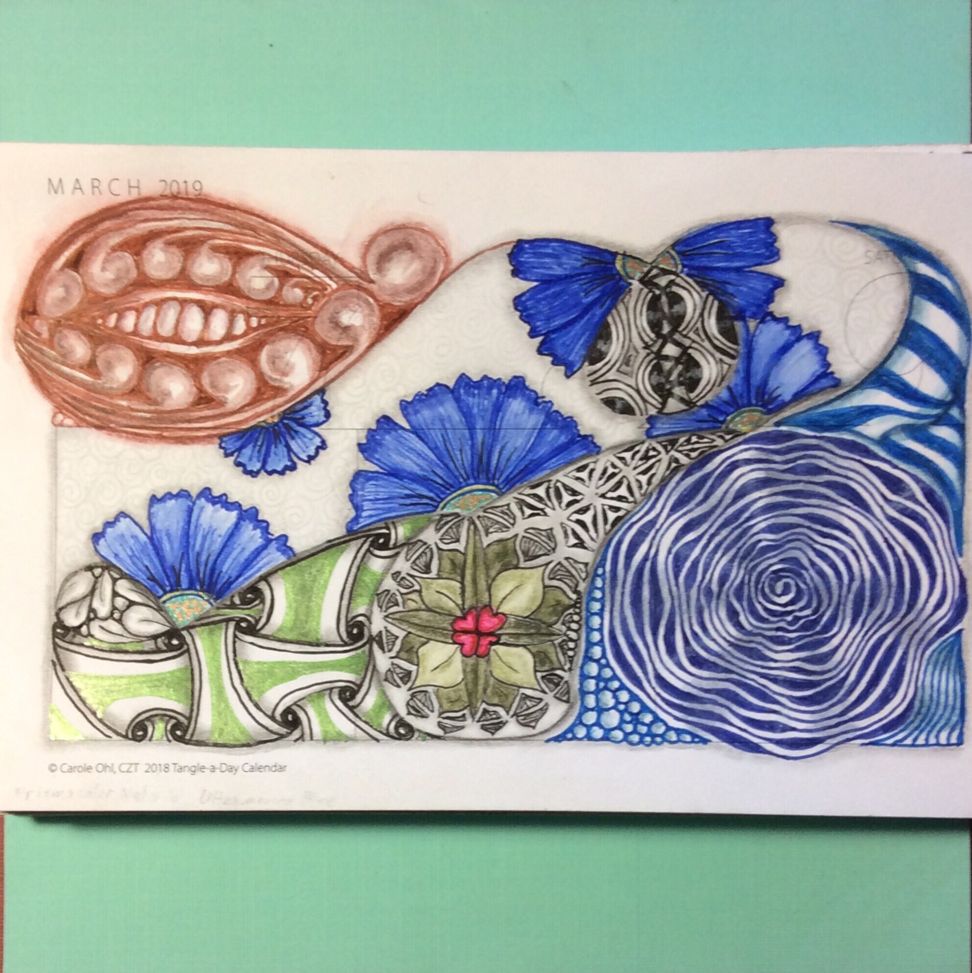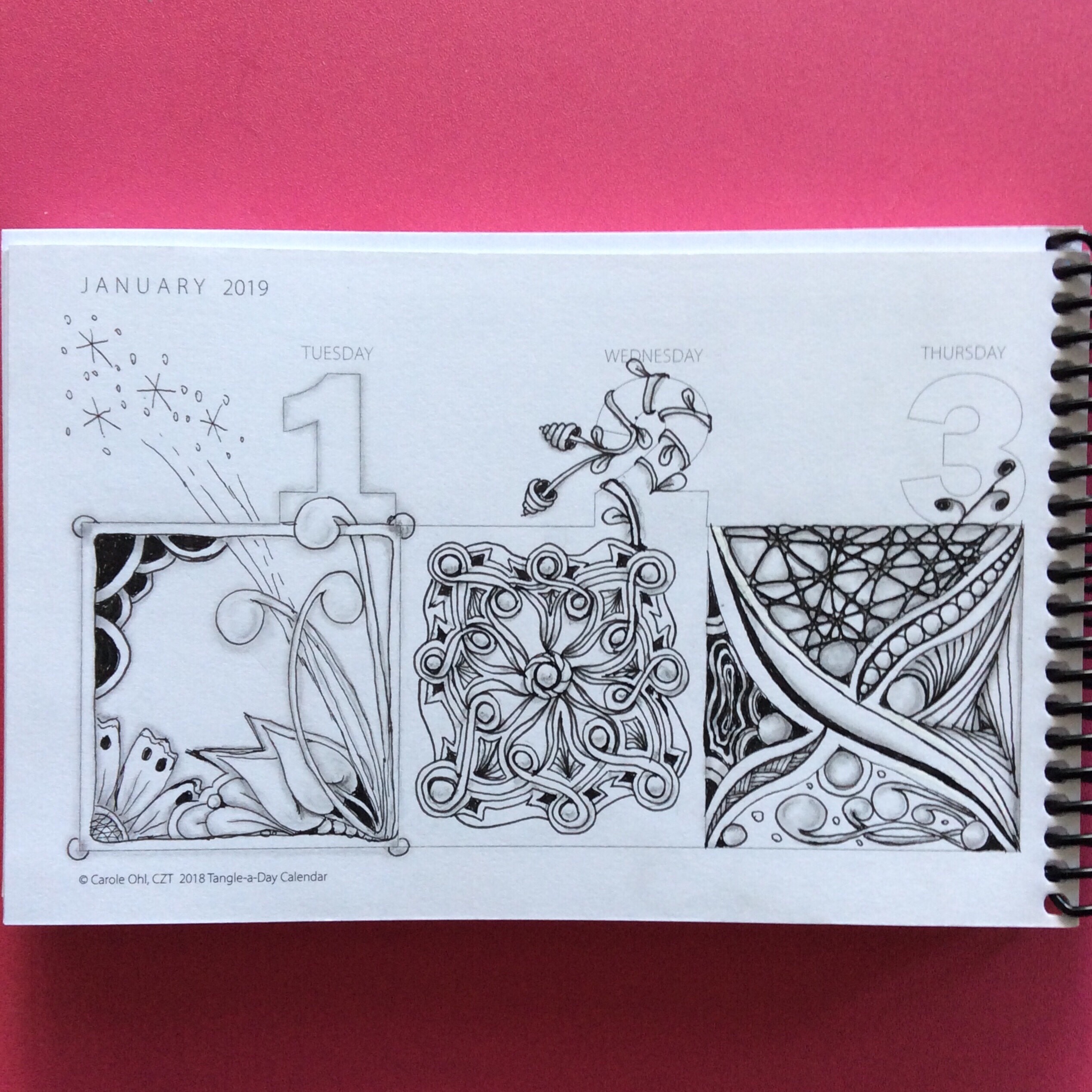 Here are the cover and a sample tangling page from Carole Ohl’s calendar.