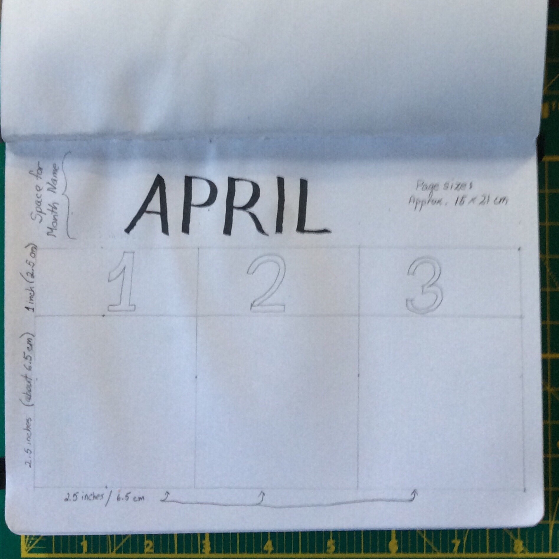 So I worked up a page in a sketchbook to sort of replicate the calendar using pencil to separate the days. The pencil can be blended into shading or erased from a string or pattern.