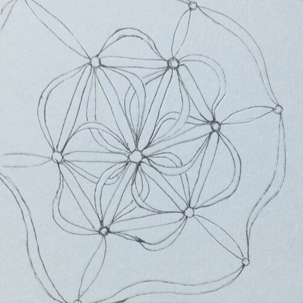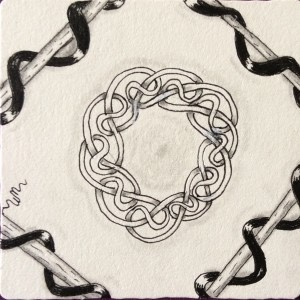 For a couple of weeks, I have been trying to chase down a lovely tangle by CZT Margaret Bremner called Skye. It reminds me of a Celtic knot in that it seems to be one continuous line.