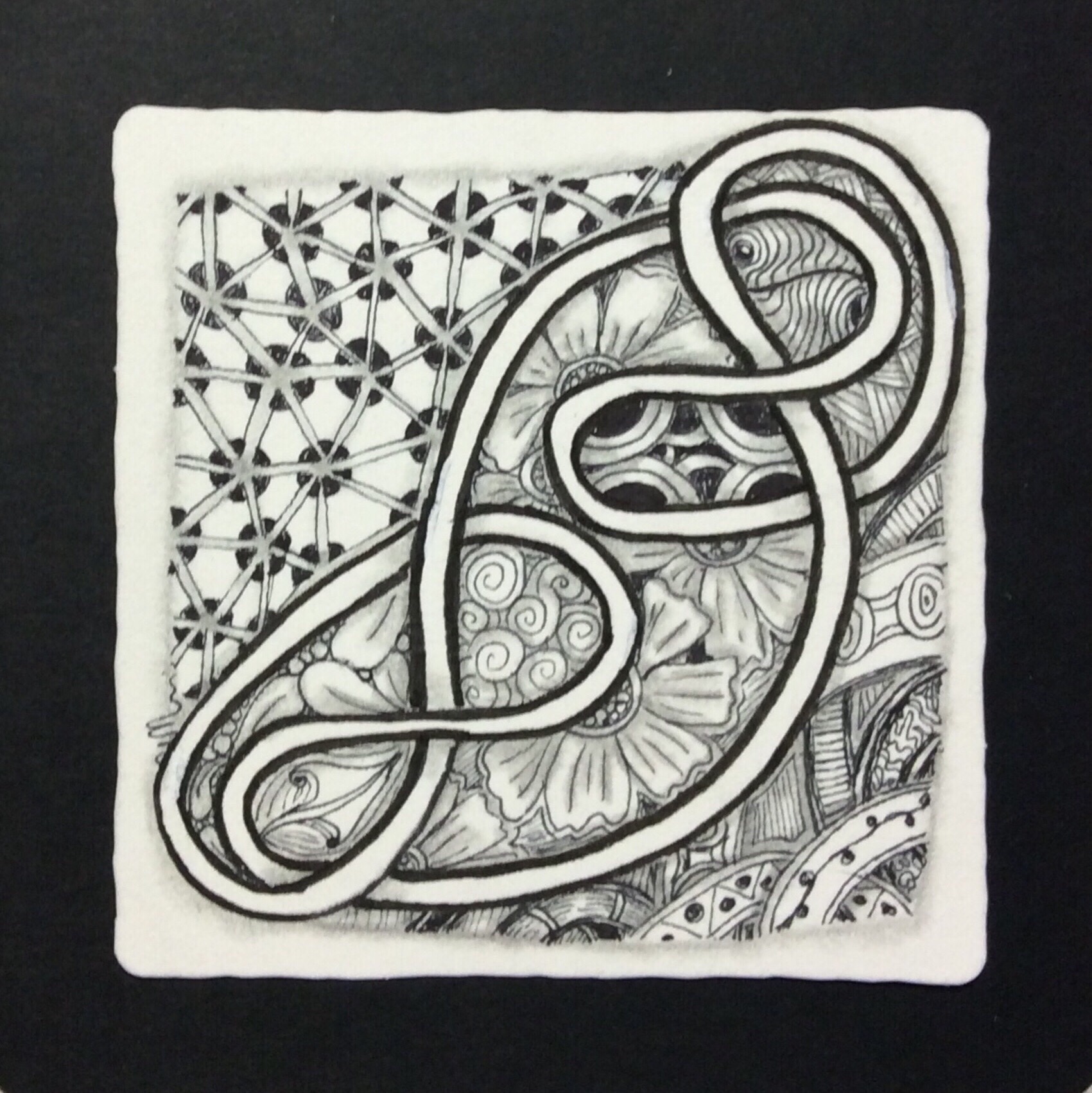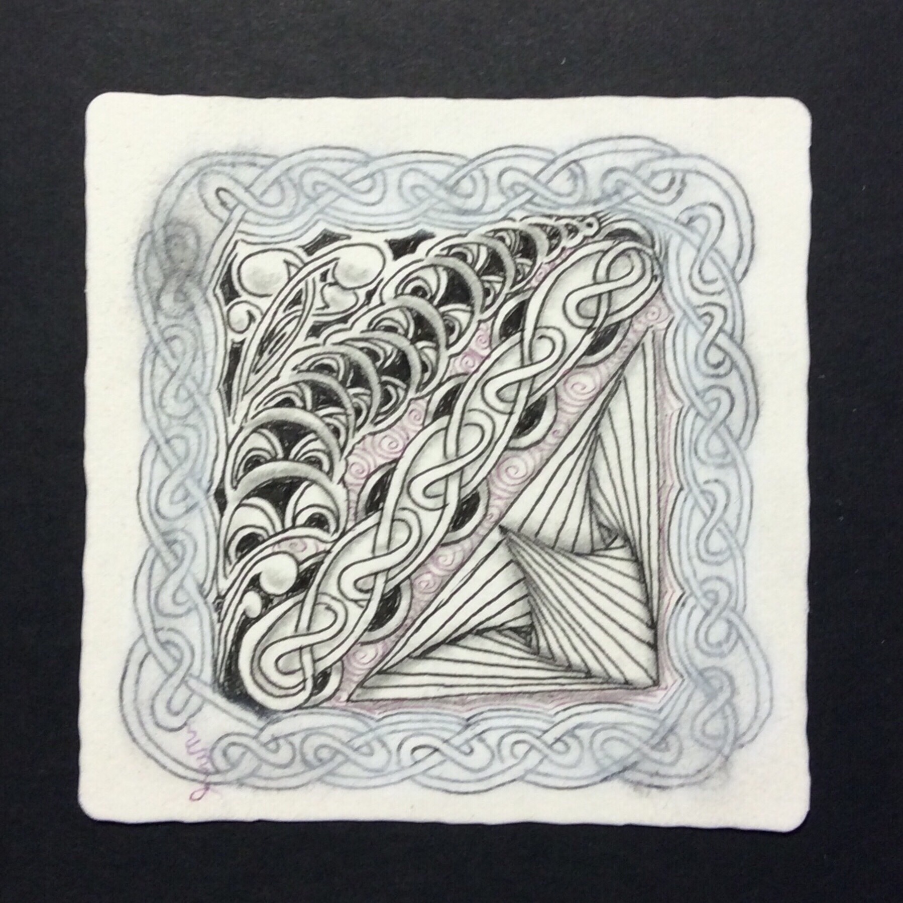 Some tanglers “get” this pattern right away. Others, like me, are distracted by openings to be Hollibaughed later, or some other reason; we have a more difficult time with this pattern. But once we get it, it becomes fun and really easy to tangle.